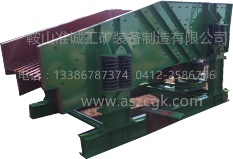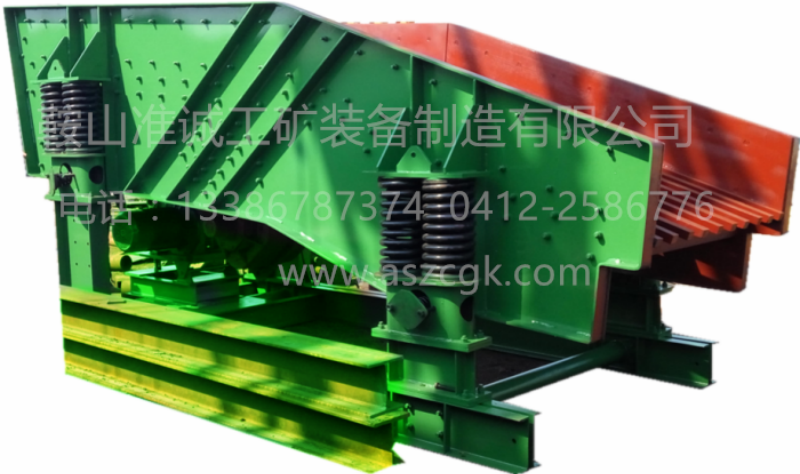 此款棒條式給料機(jī)通過(guò)角帶驅(qū)動(dòng)箱式激振器,使給料機(jī)產(chǎn)生直線運(yùn)動(dòng)軌跡。機(jī)體結(jié)構(gòu)為框架式,環(huán)槽鉚釘聯(lián)接,襯板、棒條采用錳鋼制造,結(jié)構(gòu)強(qiáng)度高,耐磨損,耐撞擊。特別適合于做建筑石料、金屬礦石大破碎的給料用。